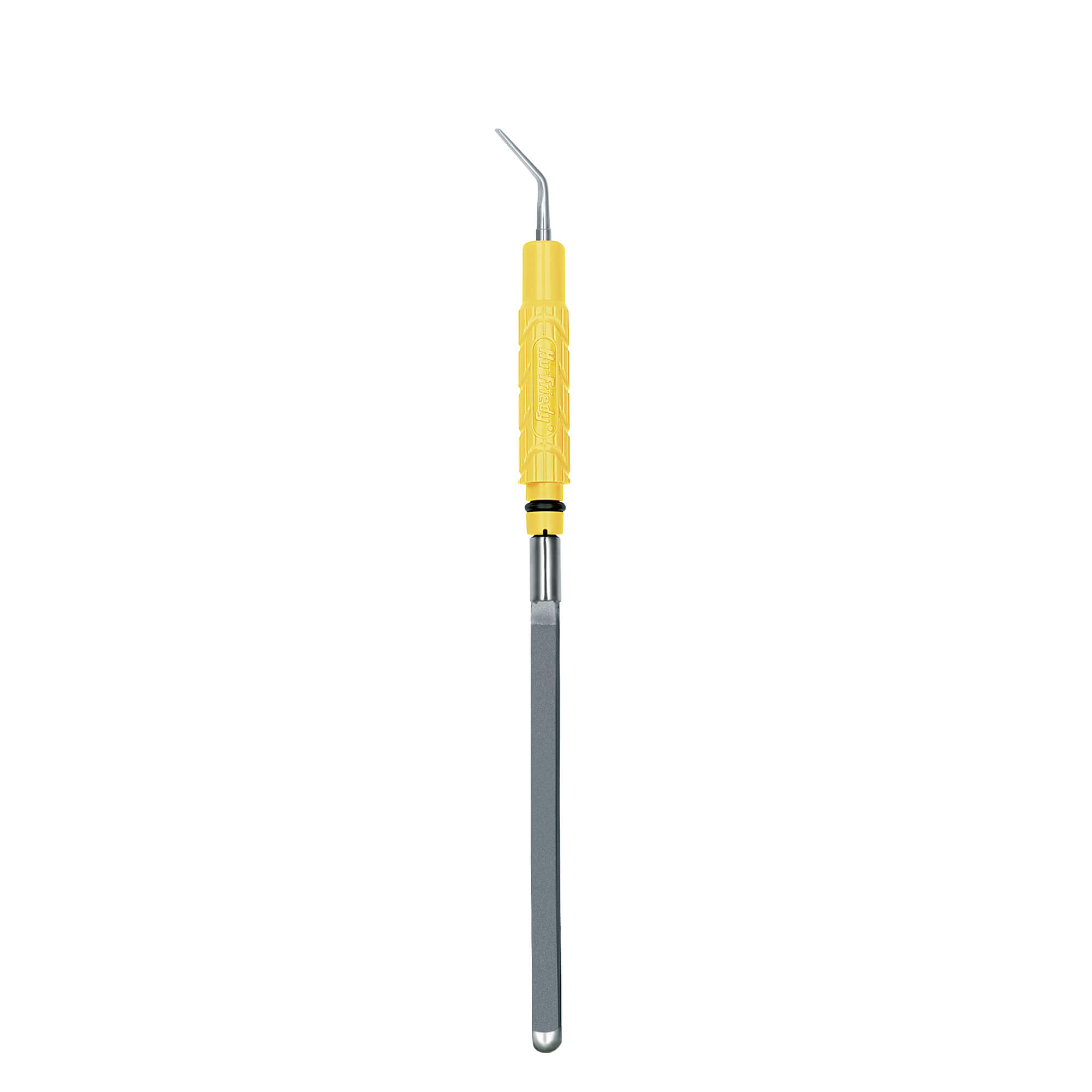 Streamline™#3 Beavertail Insert. Broad, flat "beavertail" tip, yellow resin handle, water delivery from the base of the tip, 30kHz