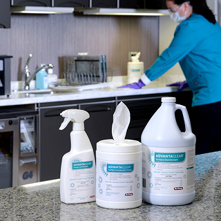 Additionally, there’s often a time-crunch between patients, but proper room turnover is critical to combatting the spread of infections. Surface disinfectants like AdvantaClear are powerful resources. With a one-minute kill time for over 30 different pathogens (and a two-minute kill time for TB), it is effective in a time-crunch. Additionally, as a ready-to-use liquid or wipes, there’s no need to measure, dilute, and mix – meaning fewer opportunities for user error.