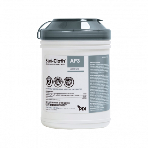 Sani-Cloth® AF3 Germicidal Disposable Wipe, Canister, 160 wipes, Large (6" x 6.75"), 12 canisters/case (P13872)