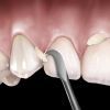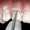 Combines a sickle-shaped scaler with a flat blade for removal of excess resin, cement, or porcelain flash. The narrow chisel removes excess interproximal material with a push stroke.