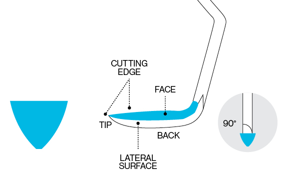 - Working ends with dual tapered cutting edges allow forprecise interproximal access