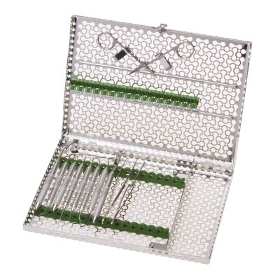 Accommodates 12 instruments, 4 elevators, 3 hinged instruments in the lid and ha...